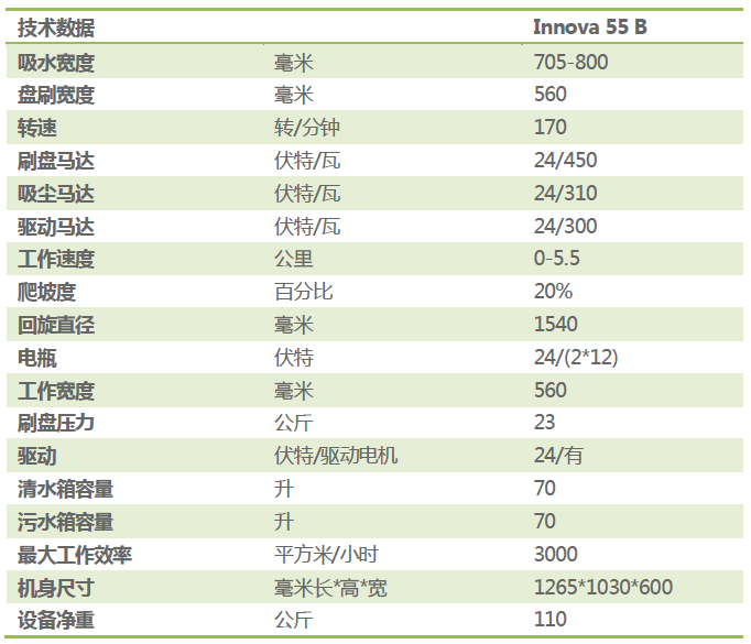 意大利COMAC高美(科邁克)駕駛式洗地機(jī)Innova55產(chǎn)品特點(diǎn):1、配備高性能出口型免維護(hù)電瓶,使用壽命更久、動(dòng)力更強(qiáng),區(qū)別于市面上其他電動(dòng)掃地機(jī),可有效延長(zhǎng)連續(xù)工作時(shí)間。2、有效縮短清潔所用時(shí)間,完成1000㎡的地面清洗任務(wù)僅需20分鐘。3、清洗效率是傳統(tǒng)人力清潔的幾十倍,并且清潔效果更出色,一臺(tái)洗地機(jī)能節(jié)省10幾名工人的開支,有效降低了清潔成本問題,省力、更省錢!4、操作面板簡(jiǎn)單、易懂,鑫金邦提供免費(fèi)上門培訓(xùn)服務(wù),“保潔大媽也能操作自如”。5、適用環(huán)境:小區(qū)物業(yè)、工廠車間、市政單位、商場(chǎng)、車站機(jī)場(chǎng)、廣場(chǎng)、公園、學(xué)校、醫(yī)院、倉(cāng)庫(kù)、停車場(chǎng)等地。